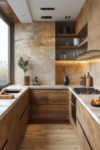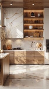 Bếp >15m² + mở: Quiet Luxury hoặc Biophilic
