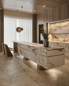 | 4 | Quiet Luxury Kitchen | Đá marble full height + tủ kính viền đồng + thiết bị ẩn | Trắng Carrara, đen mờ, vàng ánh | Penthouse, biệt thự cao cấp | 600 triệu – 1.2 tỷ |
